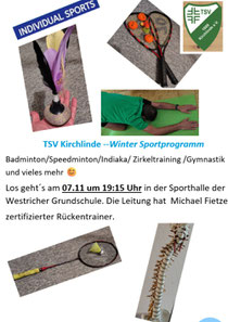 Ab dem 7. November heißt es wieder: Bewegung, Spaß und Gesundheit – ganz individuell und gemeinsam! Unser Winter-Sportprogramm bietet eine bunte Mischung aus:
